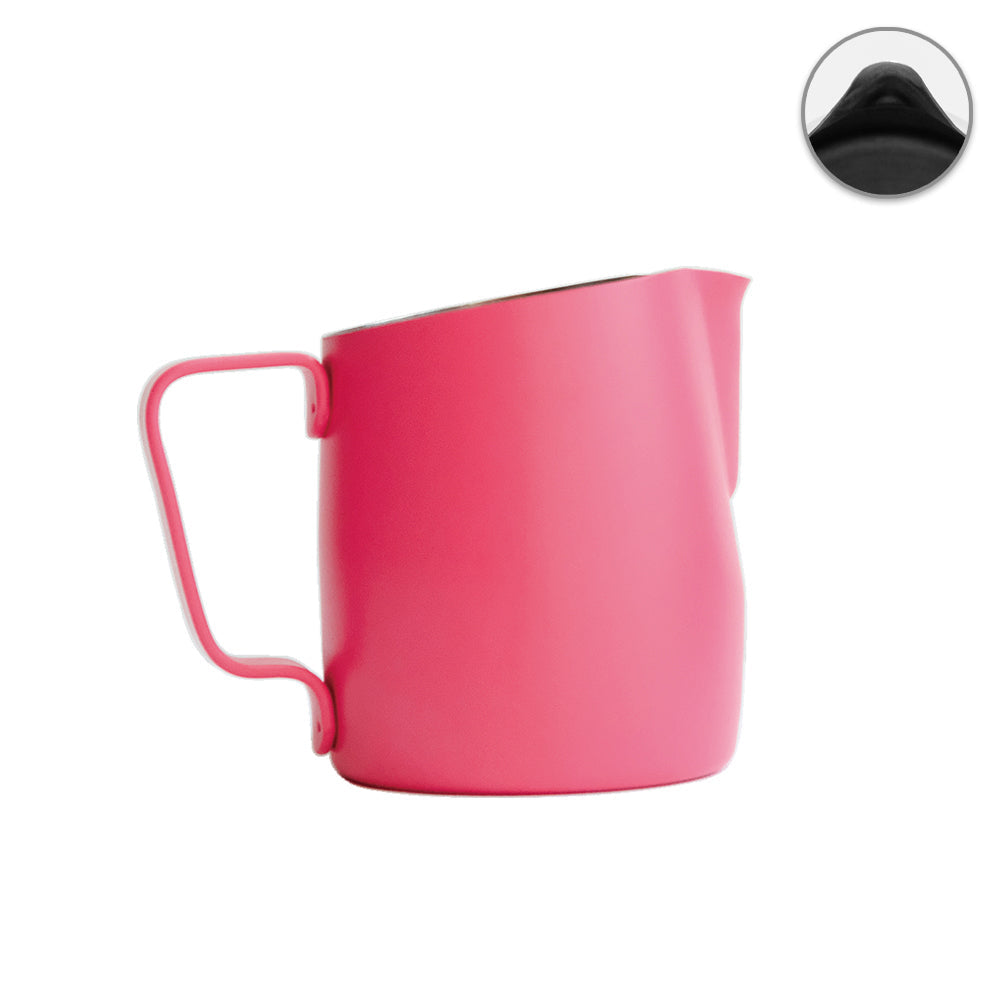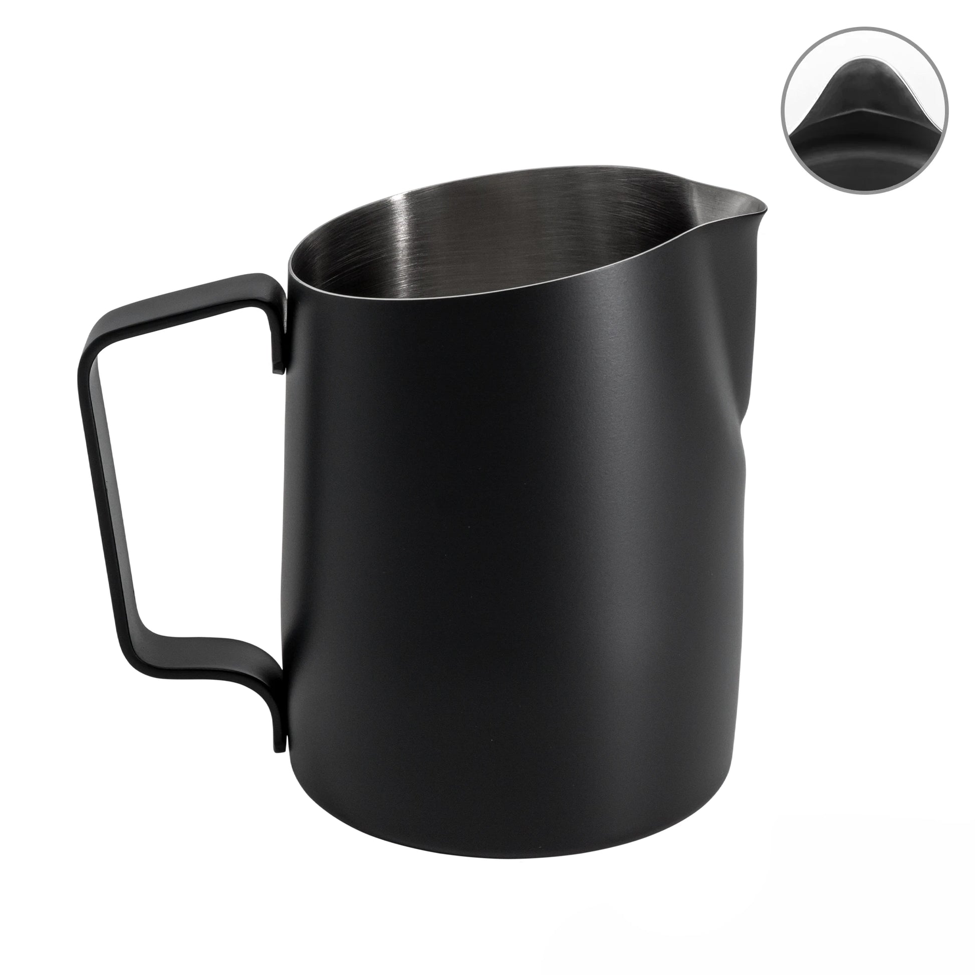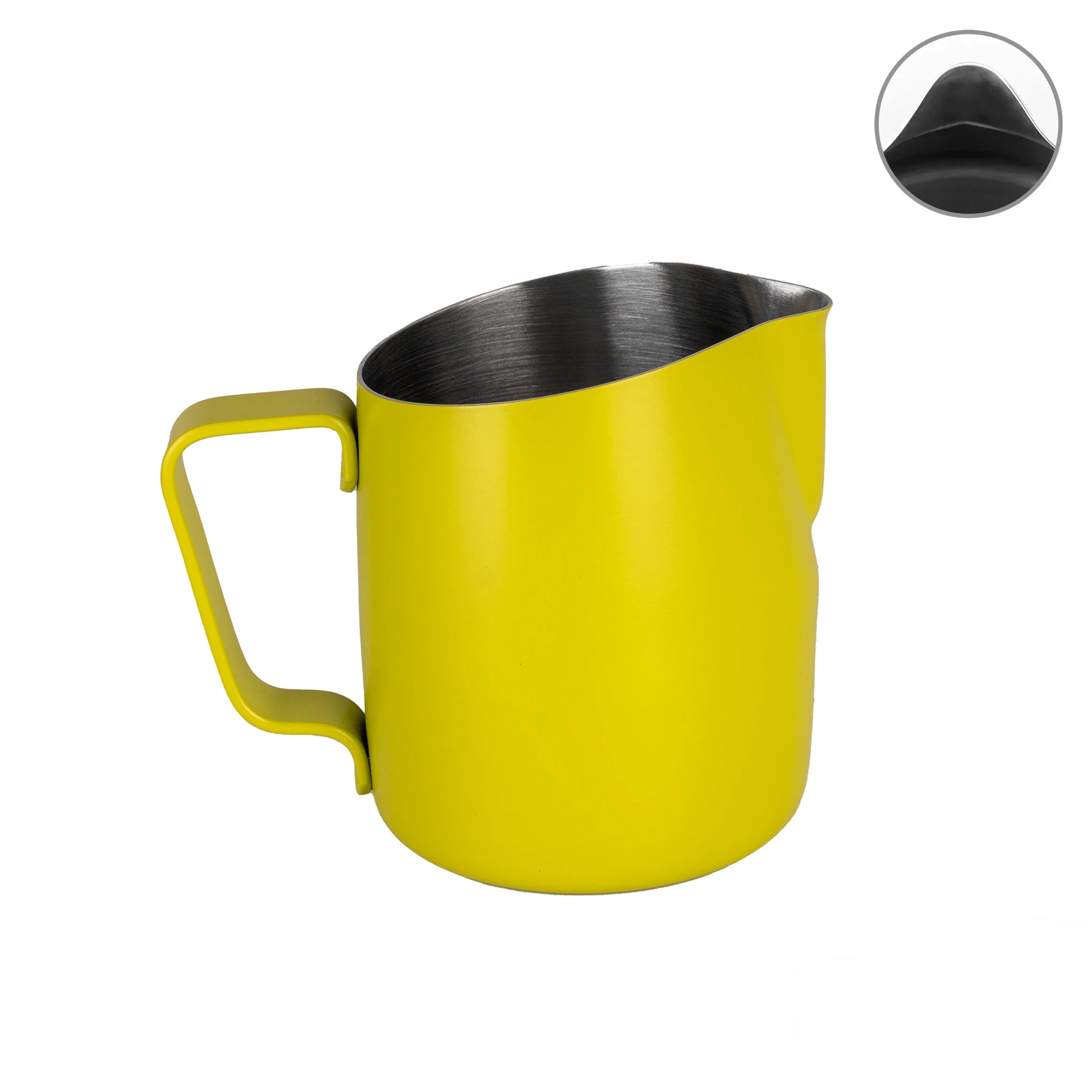 Introducing our classic round spout milk pitcher with a slanted top , designed for a faster pour and ideal for creating wave patterns with softer, rounded lines.