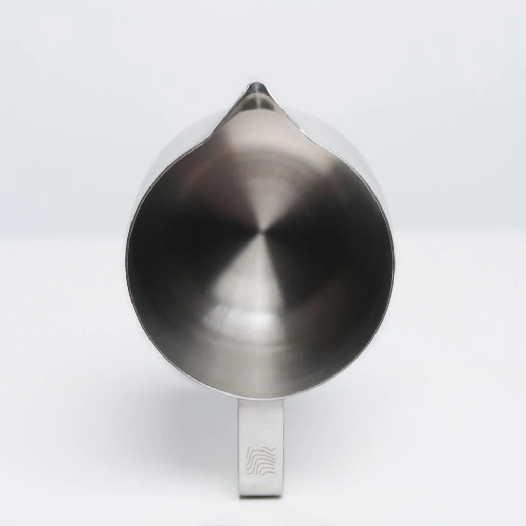 - Our new design replaces the traditional flat base with an arc-shape, together with a widened diameter to create a larger vortex during frothing process, resulting in smoother foam rollover and more consistent microfoam