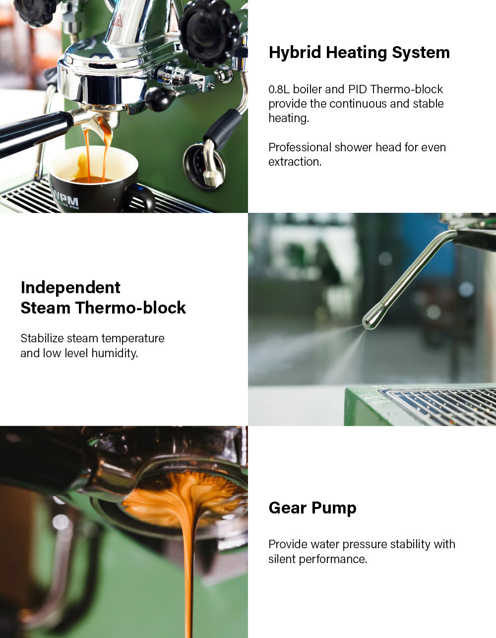 - Hybrid Heating System: Equipped with a 0.8L boiler and an advanced PID thermoblock, the KD-330X maintains continuous and stable heating. This system provides accurate temperature control, ensuring consistent brewing temperatures for perfect espresso extraction every time.